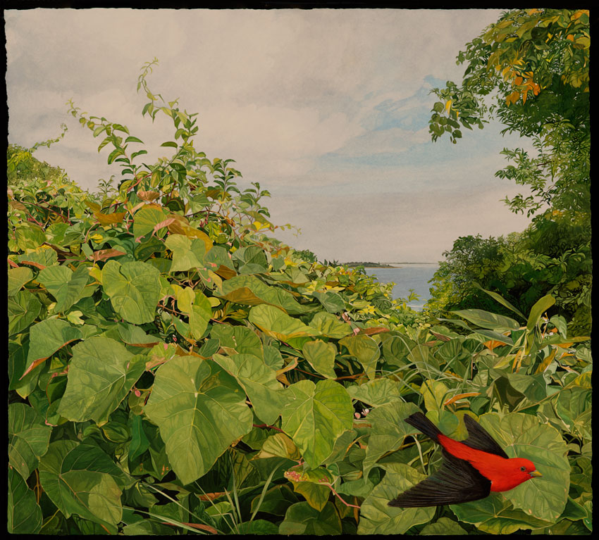 Another artist who influenced Andrew’s career path was Martha’s Vineyard painter Kib Bramhall. “Meeting him when I was a teenager was huge,” he says. “Here was a man I respected and liked, an athlete and fisherman and outdoorsman.” (Andrew is all of these things, too. His website bio states that “as a hunter, fisherman, sailor, and self-taught naturalist, the world outdoors is his source.”) The first time Andrew visited Kib Bramhall’s studio, he says, “I saw a real possibility of putting a life together doing this. If you don’t see that, it’s hard to make the leap from painting being like what you see in an art history book to actually doing it as a life venture.”