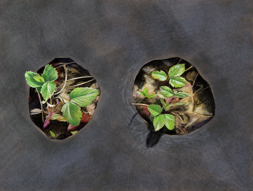 Heather Goff: “When I did my daily sketch project” [a drawing a day, done on her computer], “I tried printing a couple on canvas, but they lacked the texture you get from painting. They were flat. They work better as illustrations or posters.”